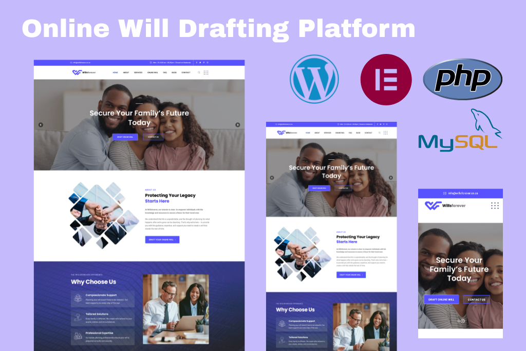 Wills Forever is a South African estate planning service that helps individuals and families create legally valid wills quickly and affordably. We designed and developed a professional website with a powerful interactive online will drafting tool. The most challenging part was building the dynamic Generate Will Form with conditional logic and backend integrations.
