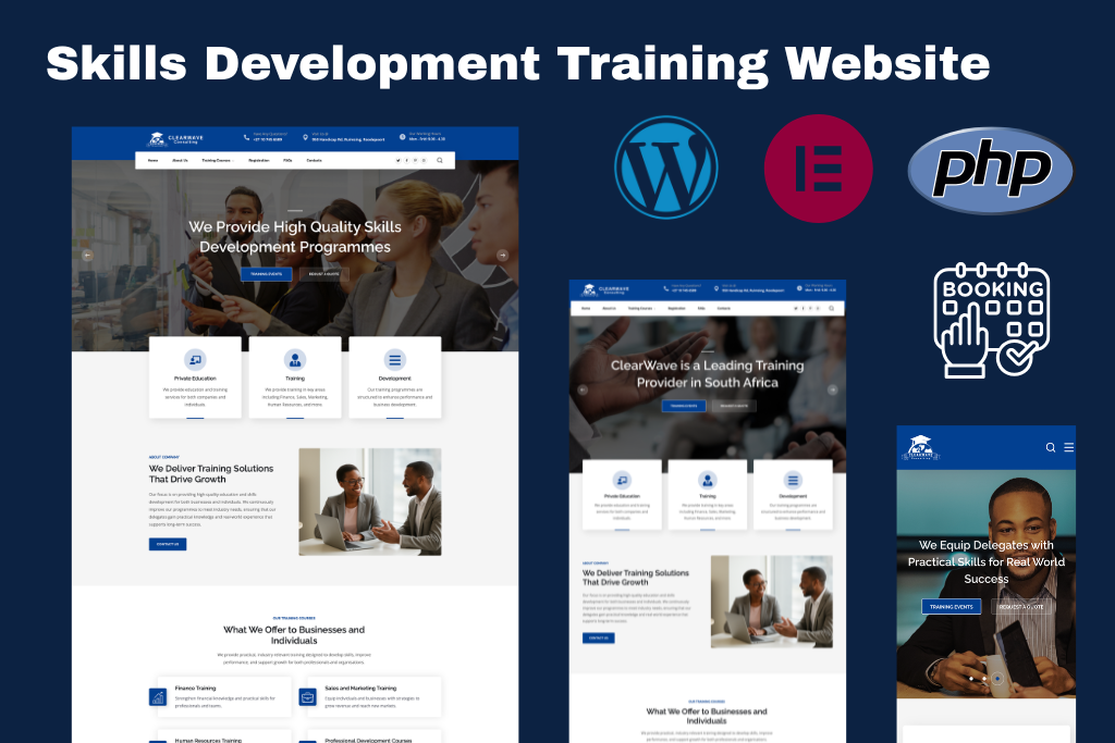 Clearwave SA is a South African skills development training provider. We designed and developed a professional website to showcase their training courses and make it easy for businesses and individuals to browse programmes and request quotes.