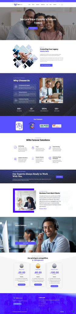Wills Forever is a South African online estate planning service that makes creating legally valid wills simple, affordable, and accessible to all. The objective of this project was to design and develop a professional, trustworthy website with a powerful interactive will generation tool that guides users through the process while ensuring compliance with South African law.