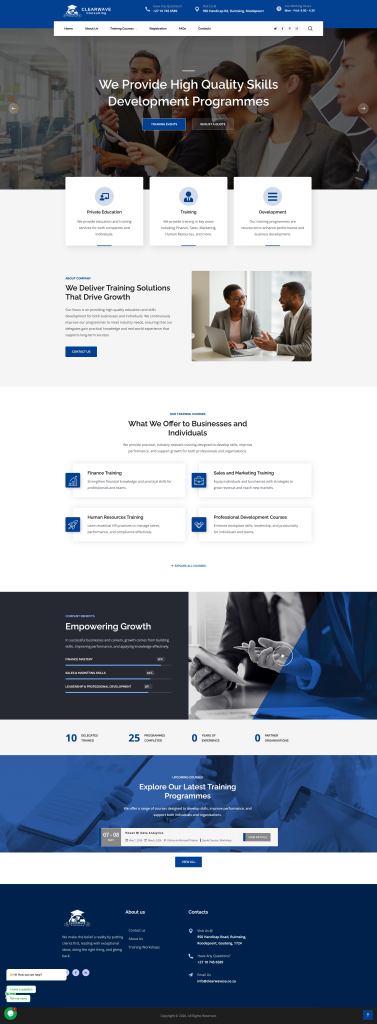 Clearwave SA is a leading South African training provider dedicated to empowering businesses and individuals through practical, high-quality skills development programmes. The objective of this project was to design and develop a professional, modern, and user-friendly website that clearly showcases their training courses, builds credibility, and makes it easy for companies and professionals to browse courses and request quotes.